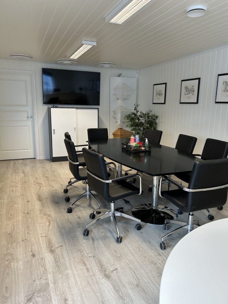 Her er vårt konferanserom! Der vi har pårørendesamtaler, og utover dette brukes det til kontor. Det er tilrettelagt for rullestol med inngang på bakkeplan og man får rullestol plassert ved konferansebordet. Vi har også et kundetoalett i nær tilknytning til konferanserommet som er tilrettelagt.