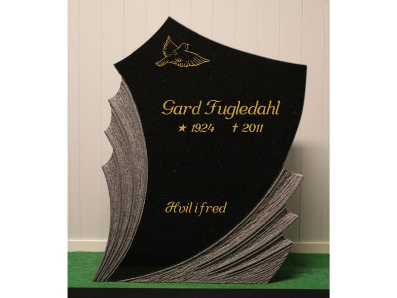 W107 Sort Granitt, polert fremside med profiler til høyre og venstre.